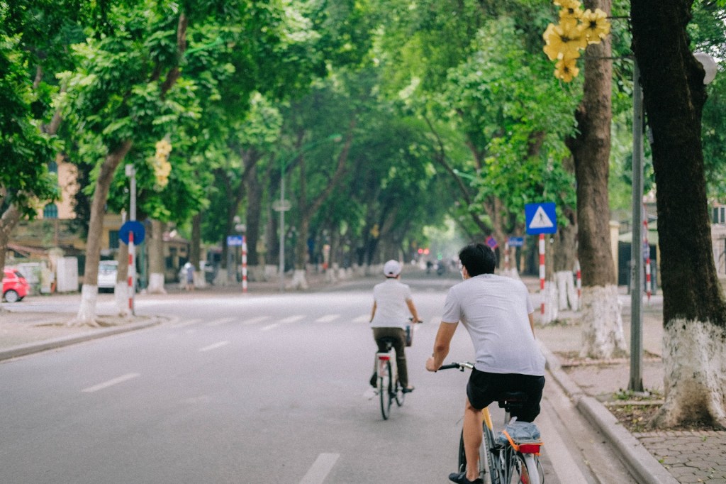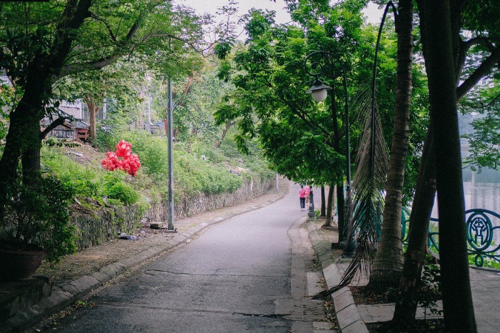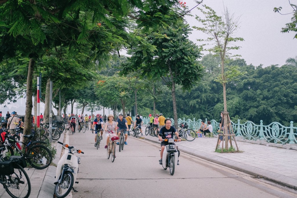 Mình cũng nhận ra rằng nhiều người đạp xe một vòng Hồ Tây chọn đi theo chiều kim đồng hồ, vì ở góc bên phải của hồ Tây (đường Thanh Niên) thì không có đường đi sát hồ nên nếu đi theo chiều ngược kim đồng hồ, người đạp xe sẽ phải đi một đoạn bên kia đường Thanh Niên rồi quay đầu lại để rẽ vào Phố Yên Hoa. Mình cũng không sành đường Hà Nội đâu, vừa mới google map đó. Cơ mà cũng nhờ cuốc đạp xe lần này mà mình biết được tên nhiều đường hơn, và đặc biệt là ngắm nhiều khung cảnh mới mẻ ngay trong thủ đô Hà Nội. À, phải kể đến những gia đình cho con của họ đạp xe cùng, dù mấy đứa vẫn còn bé tí chưa đến 5 tuổi, thậm chí là đạp xe hai bánh, trông đáng yêu cực kì.