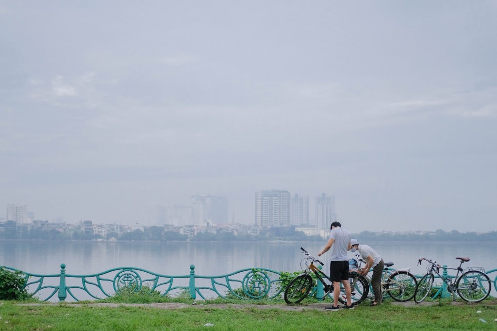 Trong vài tuần trở lại đây, mẹ mình bắt đầu thói quen đạp xe sáng sớm, thấy bảo toàn đạp nguyên một vòng Hồ Tây, rồi có hôm đạp lên trên cả cầu Long Biên nữa. Thế nên được hôm nghỉ cuối tuần mình và em trai quyết định tham gia cùng mẹ, gọi là có team đi cho vui. 6 giờ ba mẹ con dắt xe ra ngoài cổng, kiểm tra lốp xe và bắt đầu xuất phát. Lộ trình đi là theo hướng từ Bưởi, rẽ xuống phố Vệ Hồ rồi đi một vòng hồ Tây ven theo đường bên trong, sau đó về đường Thanh Niên, rẽ qua Phan Đình Phùng, lên Hàng Than ăn phở rồi đạp qua Lăng Bác để về nhà.