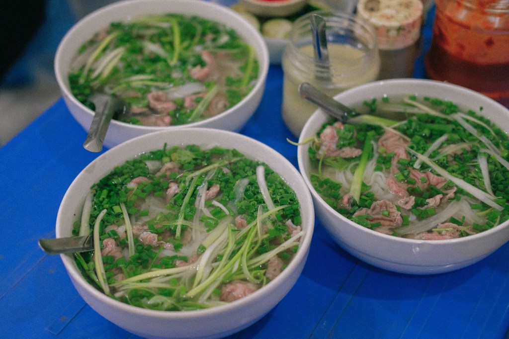 Đạp hết một vòng hồ Tây thì ba mẹ con lên Hàng Than làm bát phở lõi ở quán Phở Tuyết, chỗ mà mình thường xuyên ăn mỗi lần lên phố. Mình mới ăn ở đây 4 ngày trước. Nước phở hôm nay cũng ngon tuyệt. Đã thế quẩy còn giòn, và hai anh em mỗi thằng “bonus” thêm một quả trứng trần nữa. Perfect.