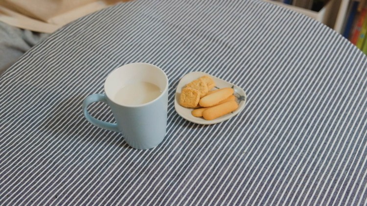 Mình cũng lấy vài miếng bánh mua ở Nguyễn Sơn ra ăn kèm, và ăn theo kiểu “quý tộc”, đó là nhúng vào cốc trà sữa. Tuyệt!