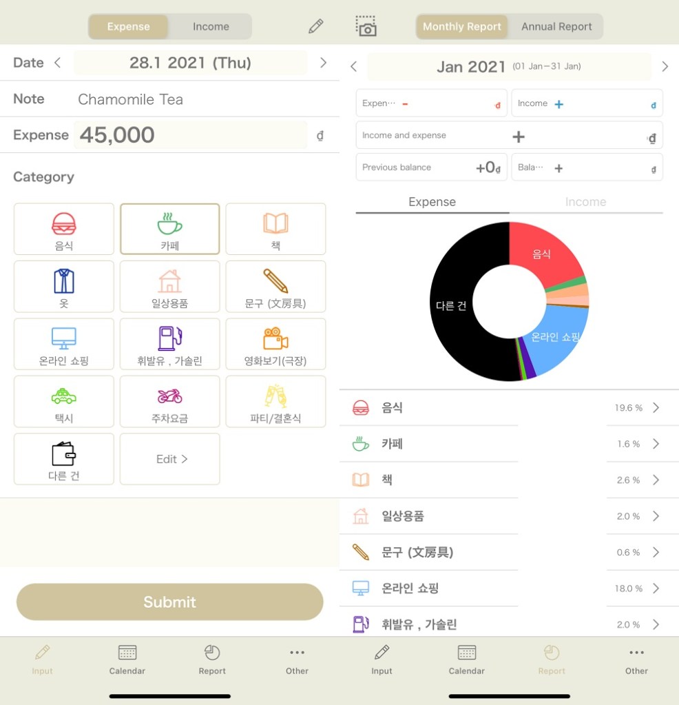 Mình có mua cuốn Kakeibo của Fumiko Chiba để tham khảo về cách quản lý chi tiêu, tuy nhiên nhận ra rằng đó lại chính là một cuốn sổ ghi chép tài chính. Bản thân mình thì không mặn mà lắm với việc viết tay đối với quản lý chi tiêu, thế nên đã tìm và dùng thử một số ứng dụng, và quyết định sử dụng Simple MoneyNote của Komorebi Inc., cùng công ty phát triển ứng dụng nhật ký Simple Diary mà mình đã từng dùng (giờ chuyển sang ghi nhật ký trên Notion). Ngoài ra mình cũng dùng Notion để tổng kết lại thông tin chi tiêu hàng tuần, dựa trên những gì đã lưu lại hàng ngày trên MoneyNote.