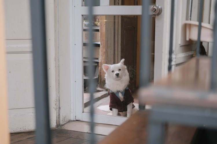 Tranquil Nguyễn Biểu mở cửa lúc 8 giờ, và mình cũng đến đúng vào giờ đó. Đi lên thì thấy bạn chó nhà hàng xóm đang nằm trước cửa quán, nên cũng vuốt ve chơi đùa với bạn ý một lúc rồi mới vào.